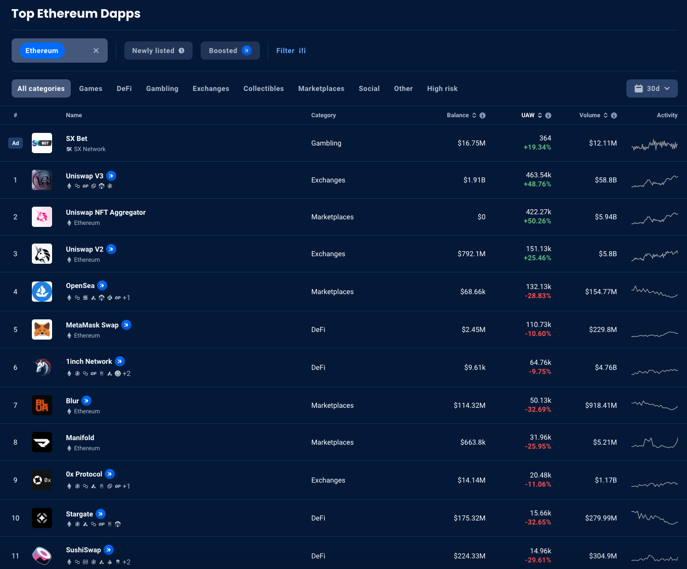 Most transactions on Ethereum are for DeFi in general and Uniswap in particular. While there are many more dApps on ETH, the entire blockchain is dominated by token trading. Most people would agree that dApps on ETH aren't useable for average people because of gas fees. Thus the only types of transactions that are viable on ETH are ones that generate more value than the gas cost to process them.